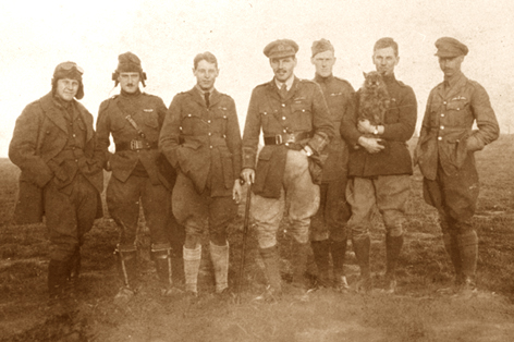 Hale, Reese, Lawson, Maj Russell (CO), Callender, Rogers, McBean (© Earl Rogers from the collection of Capt. Bogart Rogers RAF) On 16 September the squadron conducted an early morning patrol. Later Lt. Rogers and two colleagues went off looking for two-seaters, taking an hour to climb to 20,000 ft, but found none. In the afternoon the squadron repeated the morning's offensive patrol but this time encountered an enemy formation of Fokkers high above them. After a lot of manoeuvring the stand off between the two formations was broken by another British formation arriving and unwittingly presenting themselves as a target. The Germans dived on this formation which allowed 32 Sqn to get above them and in turn dive to join the ensuing scrap. Lt. Hale claimed a Fokker DVII destroyed over Brunemont and Capt. Callender and Lt.s Rogers and Lawson each claimed Fokkers OOC over Sancourt and Marquion (NW of Cambrai). On 24 September an afternoon escort for a returning bombing raid tangled with about 30 EA which had attacked the bombers. Eight Fokker DVIIs were claimed OOC, Capt. Callender claiming two. Lt. Atkinson's aircraft was shot up and crashed. On 27 September 32 Sqn was escorting bombers (27 Sqn) to bomb Emerchicourt aerodrome when they were attacked by 15 EA (Jasta 5). Lt. Rogers claimed one Fokker DVII destroyed in flames, Lt. Lawson destroyed two in flames, one being Ltn Fritz Rumey who's top wing hit Lawson's undercarriage. Rumey attempted to parachute unsuccessfully (1). Lt.s Tancock and MacBean each claimed one EA OOC. In the afternoon a further escort patrol was conducted and they met the returning bombers in close formation with 62 Sqn in escort, pursued by some 40 EA. In the ensuing combats Lt. Hale claimed a Fokker DVII destroyed and a further two OOC over Cambrai. 2nd Lt. Cawley was credited with one EA OOC but was brought down and taken prisoner.
